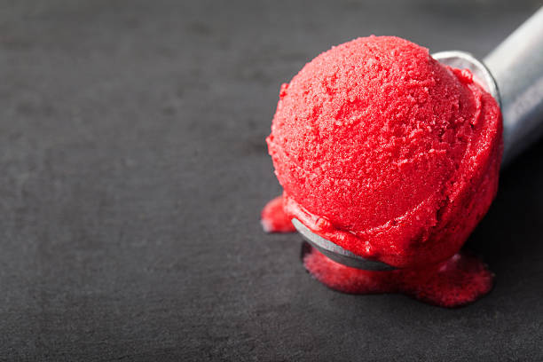 Ice cream sorbet. Black stone background. Copy, text space